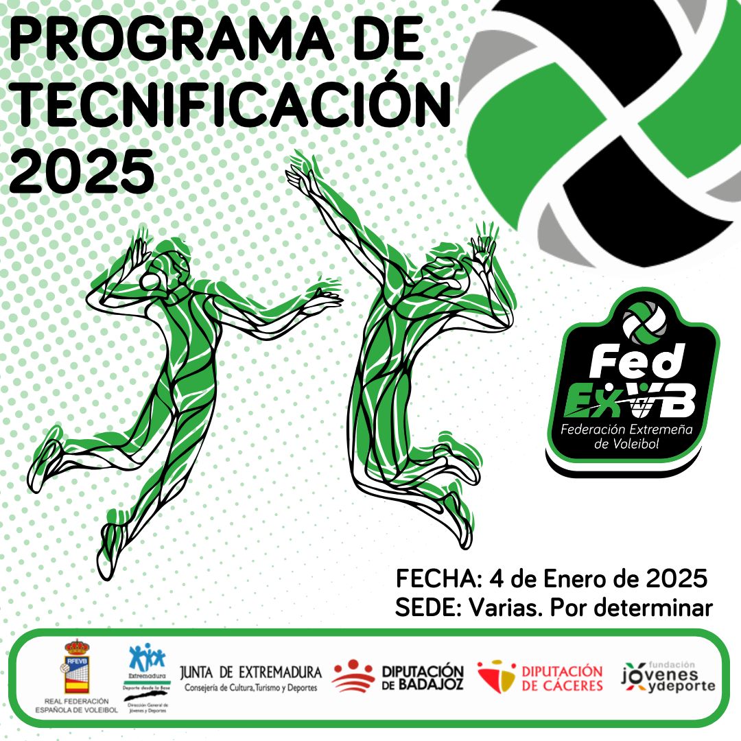 La Federacion Extremeña de Voleibol abre el programa de tecnificación 2025 el próximo 4 de Enero, a continuación mandamos toda la información relativa a esta 1ª concentración de tecnificación.