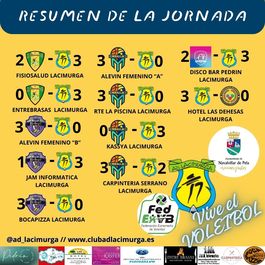 El sábado nuestros equipos de 1ª división femenina se desplazaban a Moraleja donde nuestro alevín fue superado por las de Moraleja por 3-0 al igual que nuestro RTE LA PISCINA LACIMURGA, mientras nuestro equipo KASSYA LACIMURGA ganaba por un contundente 0-3 y en categoría juvenil nuestro equipo CARPINTERIA SERRANO LACIMURGA caía por un 2-3 muy ajustado.