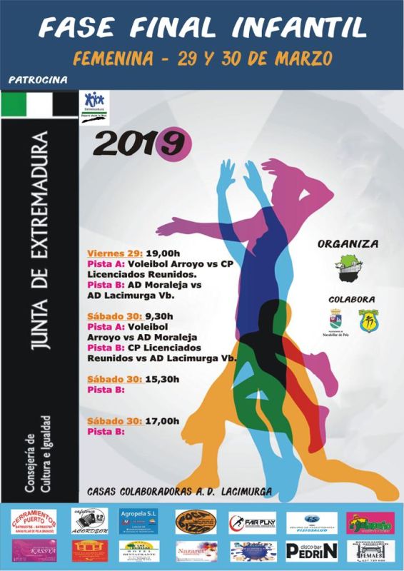 En esta final autonómica participan los equipos de Voleibol Arroyo (Arroyo de la Luz), CP Licenciados Reunidos (Cáceres), AD Moraleja (Moraleja) y AD Lacimurga Vb (Navalvillar de Pela).