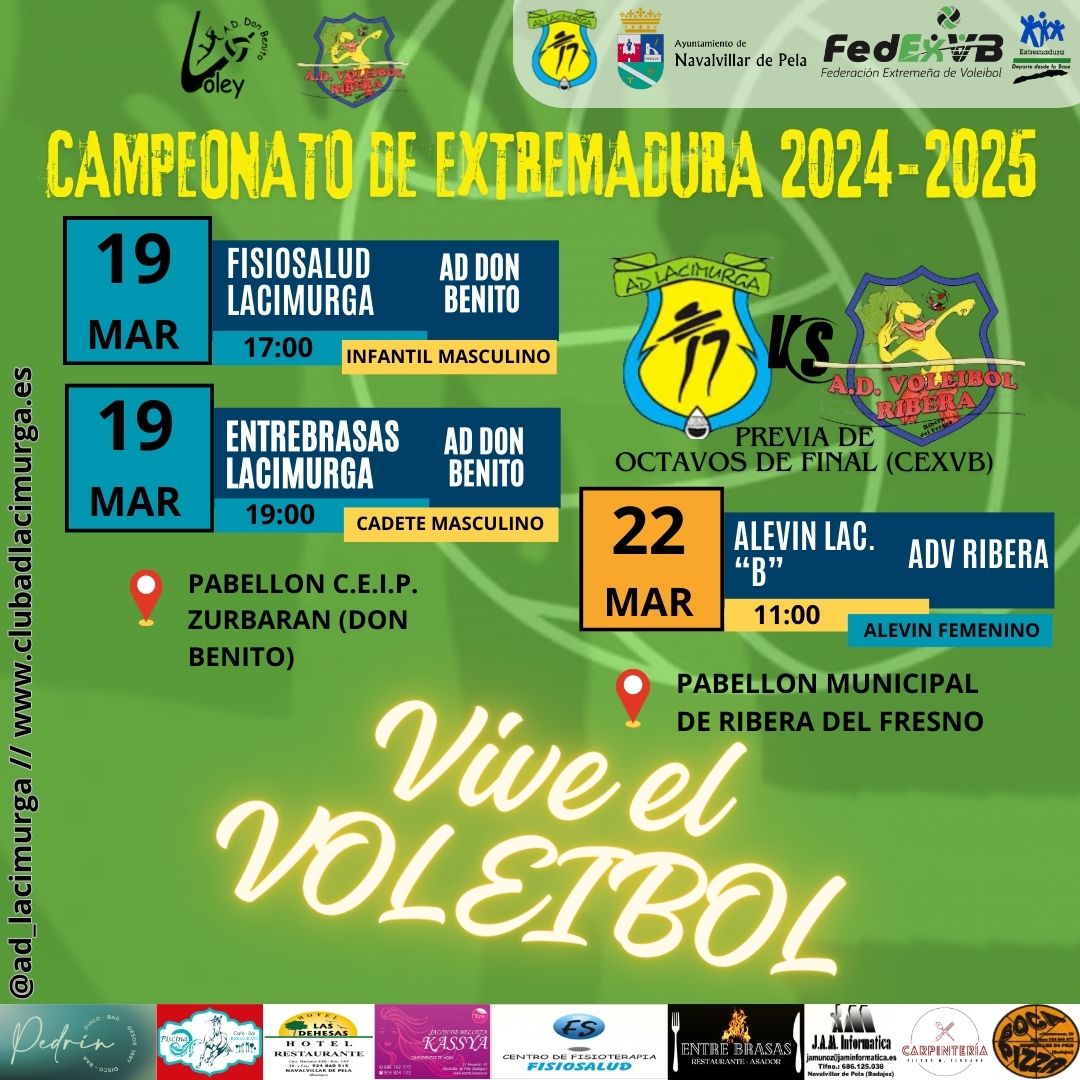Por otro lado el equipo ALEVIN LACIMURGA "B", se desplazara el sabado a Ribera del Fresno para disputar su partido de previas de Octavos de Final que nos abre la puerta de los play off.