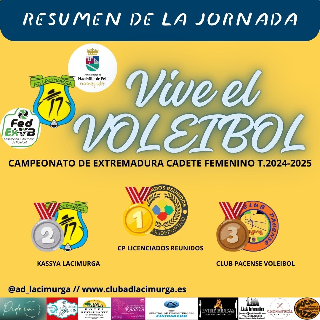 El pasado sábado el equipo KASSYA Lacimurga se disponía a jugar su fase final, en semifinales se enfrentaba a Club Pacense Voleibol un rival que sabíamos que era muy duro al que no habíamos podido doblegar en liga regular, en un partido donde las peleñas entraban muy concentradas, a pesar de como estaba el pabellón y de la presión de disputar una fase final, no titubeamos en ningún momento dando todo en cada jugada y siguiendo el plan de juego que se llevaba, en un partido que finalmente acababa con un 3-0 a favor de las nuestras y nos metía de lleno en la final que se celebro por la tarde contra Licenciados Reunidos otro rival al que no habíamos podido sacar ni un punto en liga regular. Una final la cual dominaba el equipo local desde el inicio con superioridad que nos hacia dar el 100% en todos los momentos del juego y que por ello nos hizo tener mas errores que las cacereñas. Hay que destacar el desarrollo de juego que hubo en todo el día donde se vieron acciones de juego que hacían vibrar a la grada.