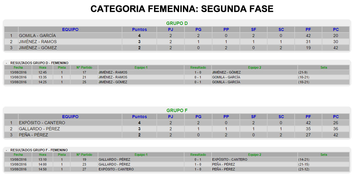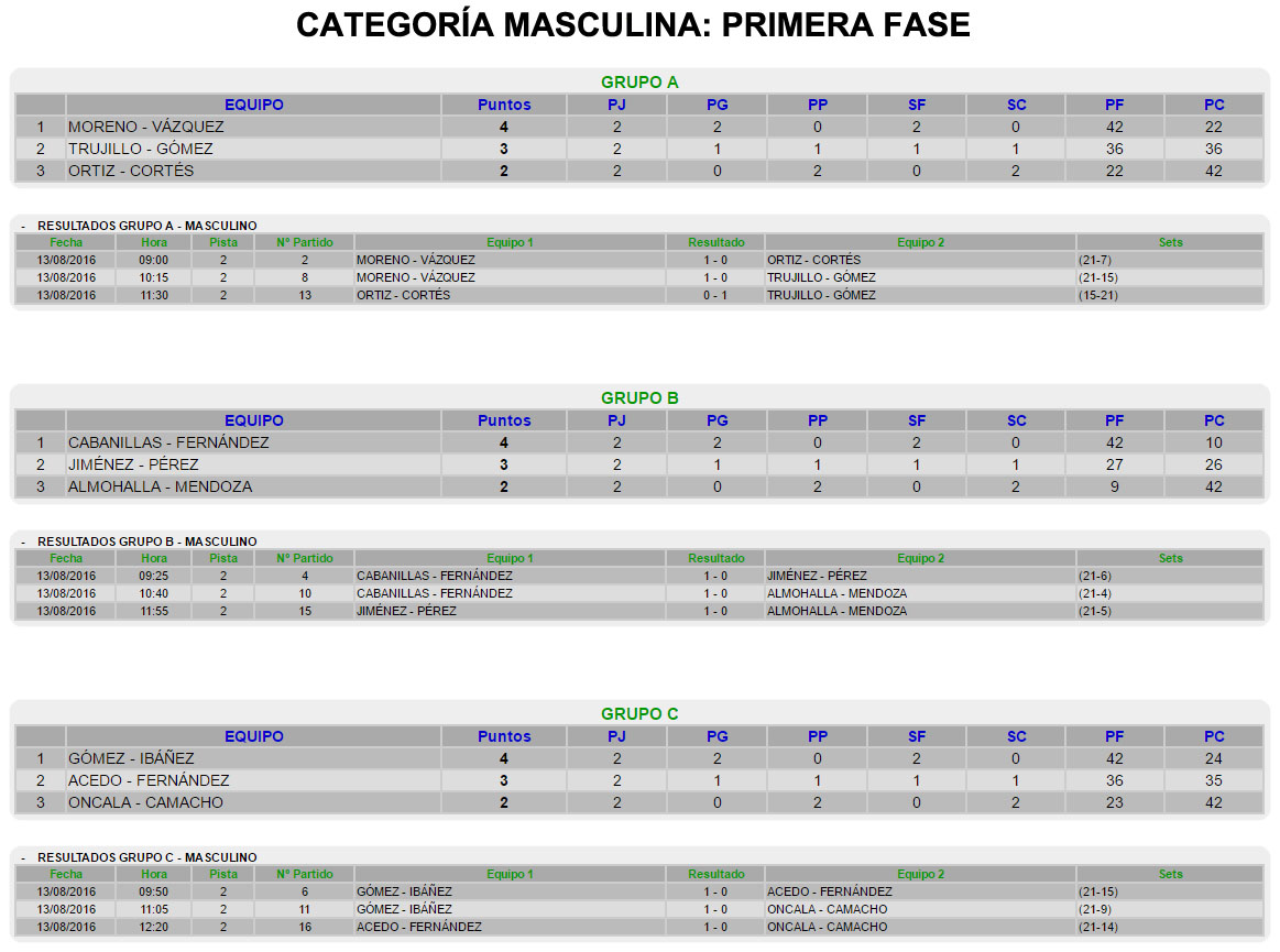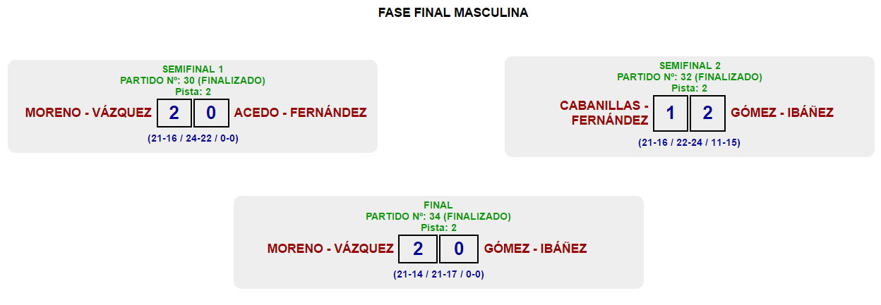 A continuación, os dejamos los resultados del torneo: